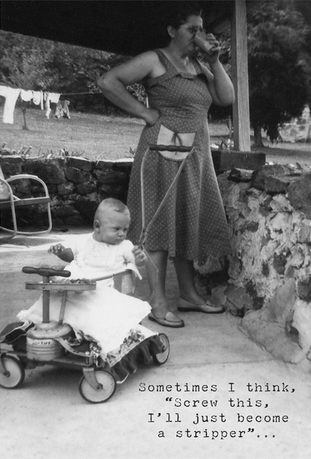 Made in the USA. Outside: Sometimes I think, "Screw this, I'll just become a stripper"…
