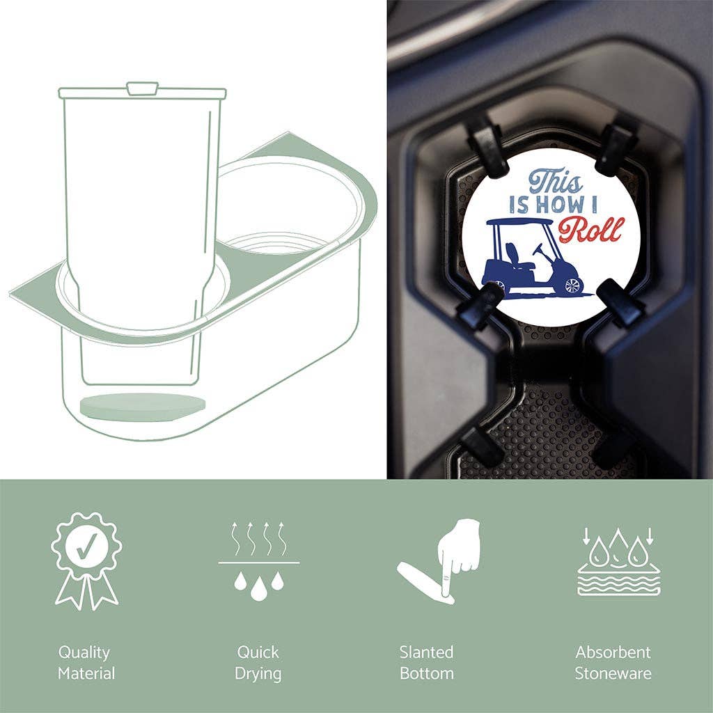If you don’t know about car coasters yet…they’re a big deal. Like hair in the 80’s. You might ask yourself, “where have these been all my life?” Car coasters fit snuggly into your vehicle’s cup holders. Strategic divot on one side so they can be easily popped out. Pretty & practical – a pop of design and they keep your cup holders clean. 2.65” diameter. Absorbent ceramic coaster. Designed, printed and packaged in the USA