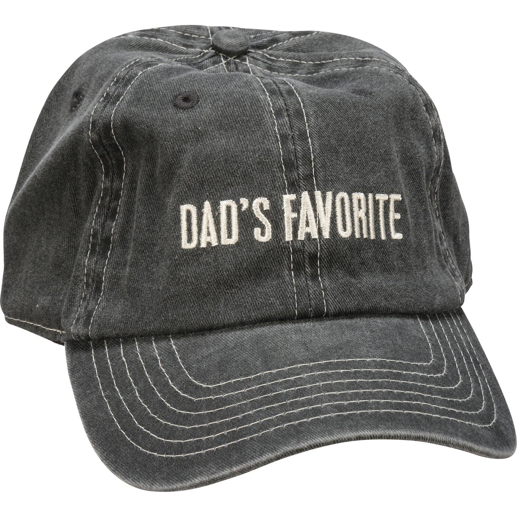 A cotton baseball cap from our Caps & Beanies Collection featuring an adjustable brass enclosure on the back. Features a box sign style embroidered "Dad's Favorite" sentiment. Our Dad's Favorite baseball hat is one size fits most. Hand-wash only.