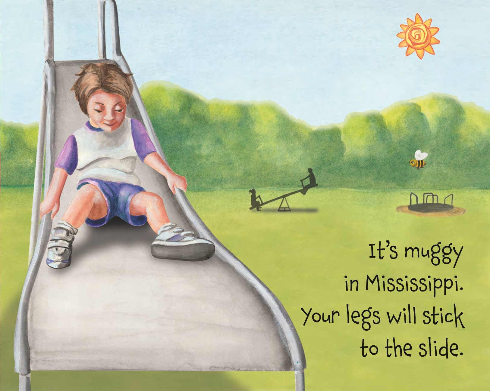 Don’t sweat that muggy Mississippi weather. Catch a breather with a colorful board book packed with playful rhymes and helpful tips for breezing through the season.