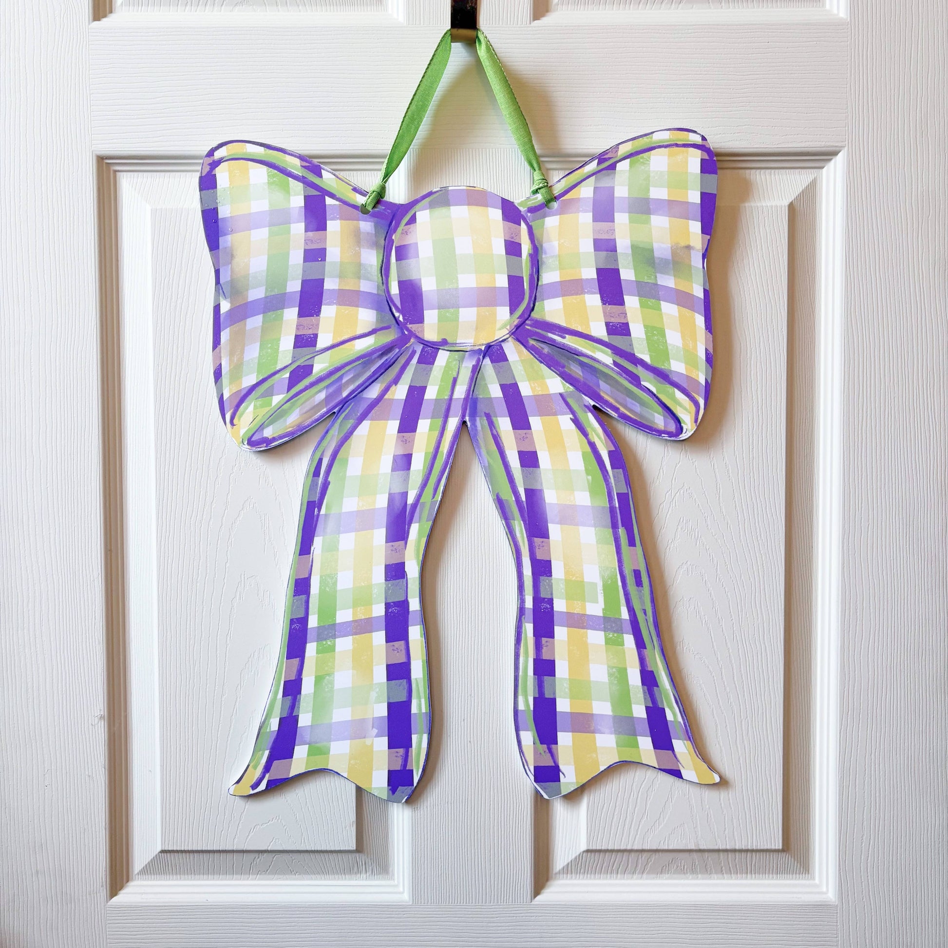 Mardi Gras Plaid Bow Door Hanger