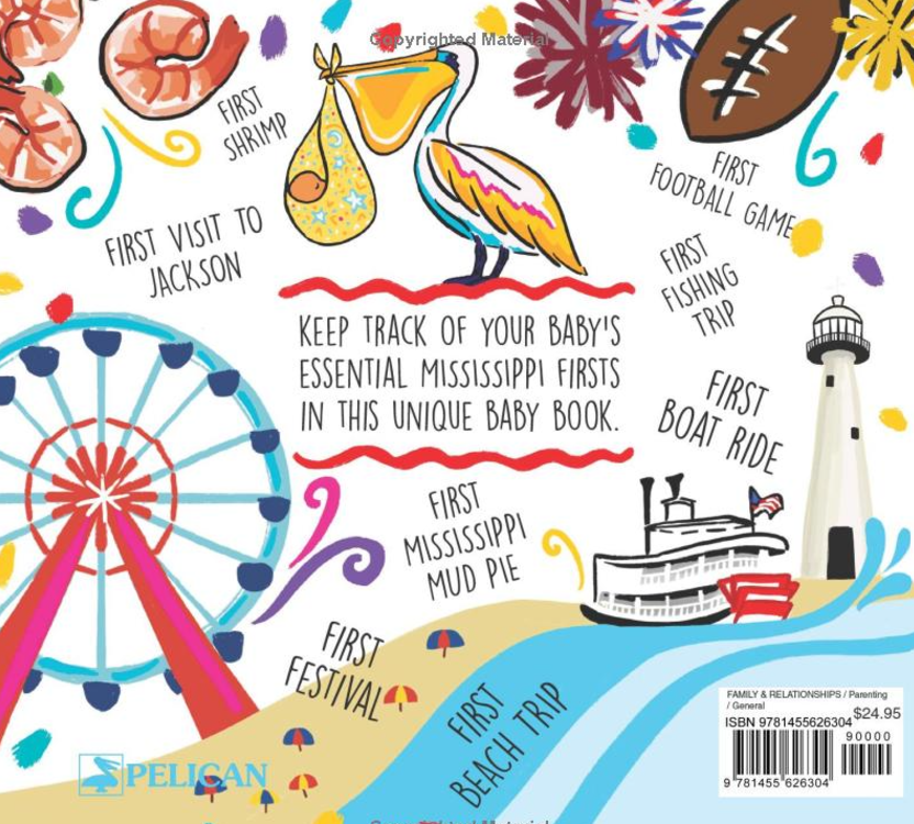 Capture baby’s first experiences with food including favorite fried chicken, biscuits, and gravy, and Mississippi Mud Pie! Colorful pages provide guided journaling of the baby’s first beach trip, visit to the zoo, and more.
