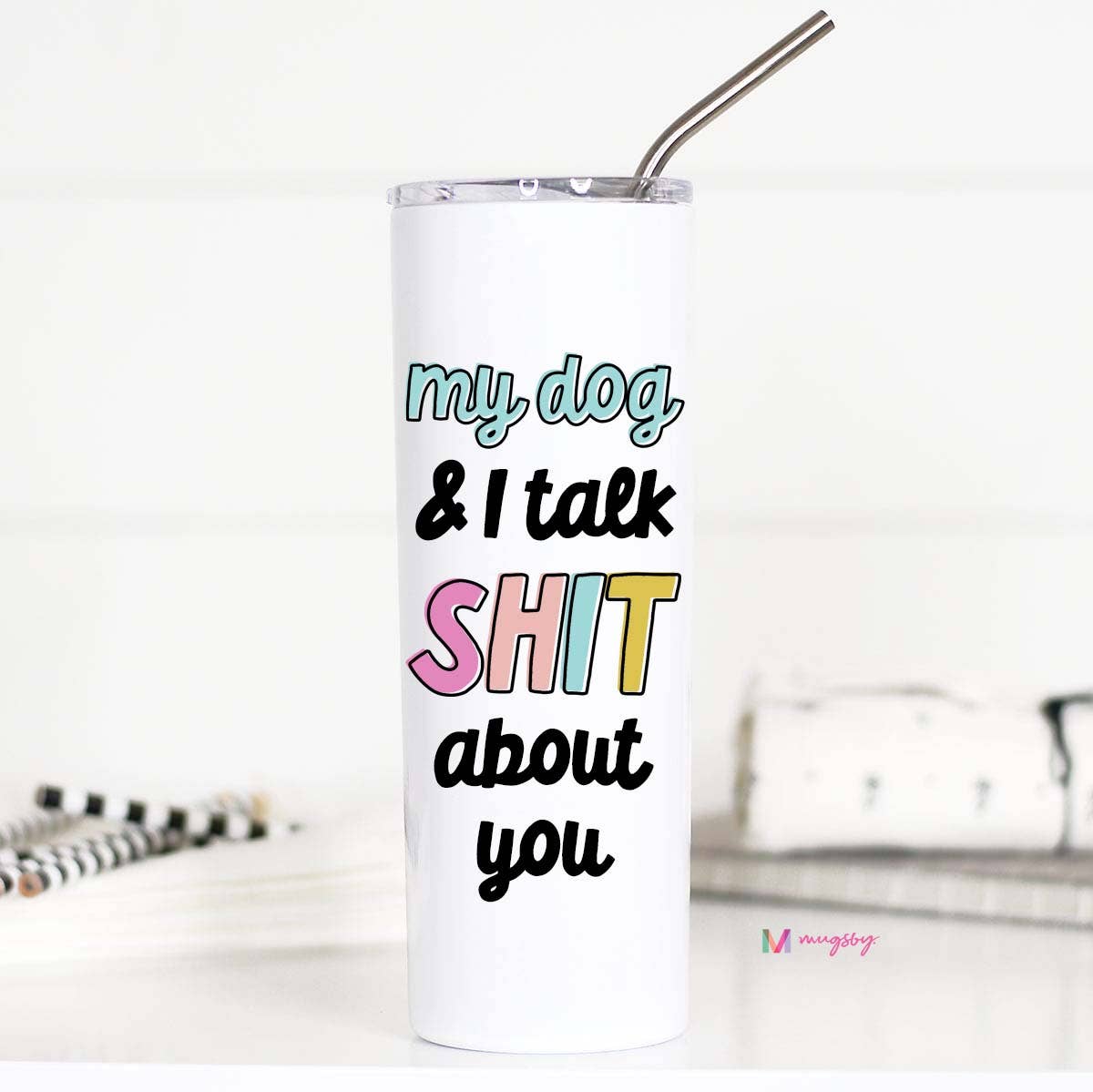 My Dog and I Talk Shit stainless tumbler